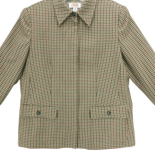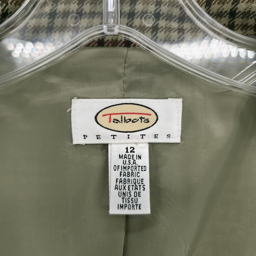 TALBOTS Vintage Houndstooth 100% Wool Zip Jacket Blazer MADE IN USA 12 PETITE