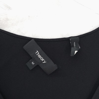 THEORY Black Sleeveless A-Line Top Rosina Crepe V-Neck Size MEDIUM