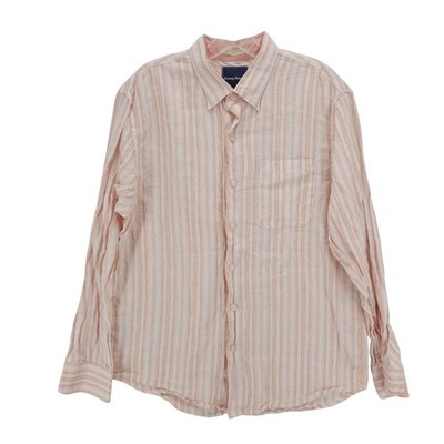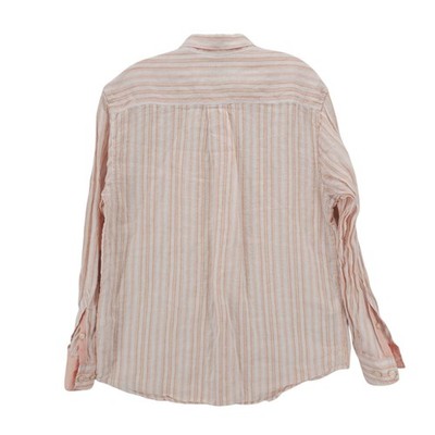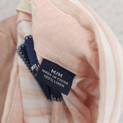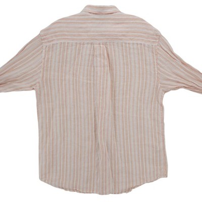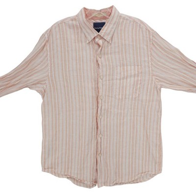 TOMMY BAHAMA 100% Linen Shirt Orange White Stripe Long Sleeve Size MEDIUM