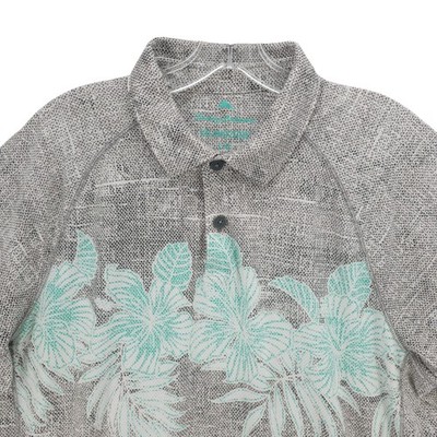 TOMMY BAHAMA Island Zone Polo Shirt Across The Fronds Fog Grey Lightweight LARGE