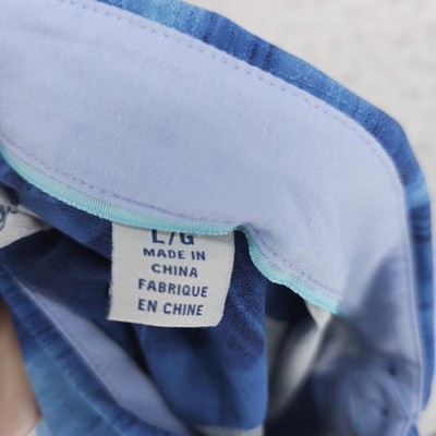 TOMMY BAHAMA Shibori Bay Camp Shirt 100% Silk Blue Colorful Pattern Men's LARGE