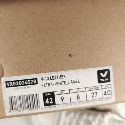 VEJA V-10 Men's Leather Sneakers Extra White CAMEL VX0202652B EU 42 US 9