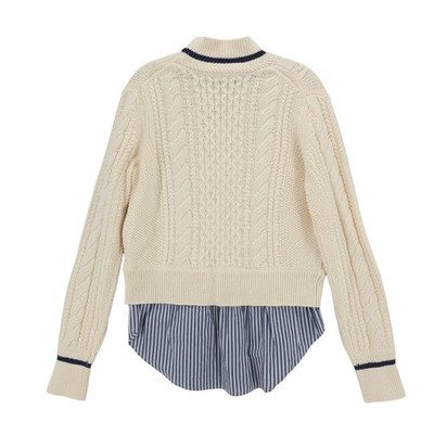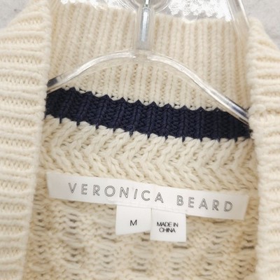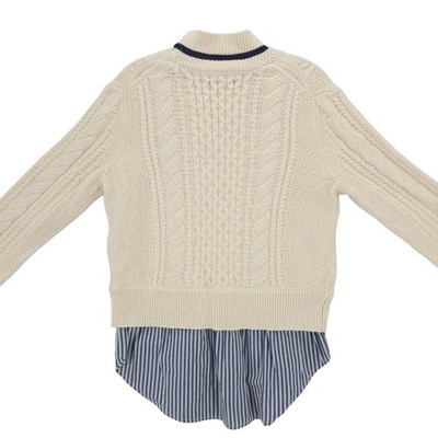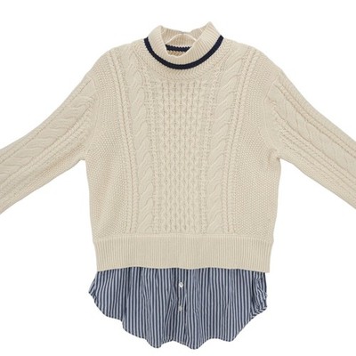 VERONICA BEARD Fritz Mixed Media Sweater Layered Shirt Cable Knit Ivory MEDIUM