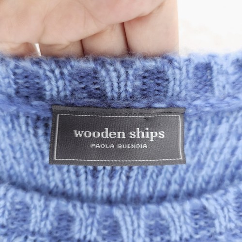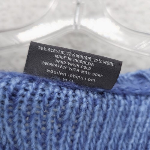 WOODEN SHIPS Blue Marled Chunky Knit Sweater Pullover Acrylic Mohair Wool M/L