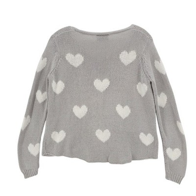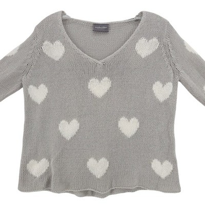 WOODEN SHIPS Gray Sweater Hearts All Over Pattern Cotton Acrylic Size XS