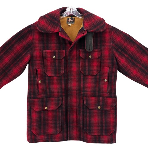 WOOLRICH Vintage 40s 50s Wool Hunting Jacket Red Buffalo Plaid Game Pouch Sz 40